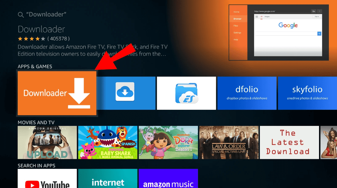 - Busca “Downloader” e instálalo.